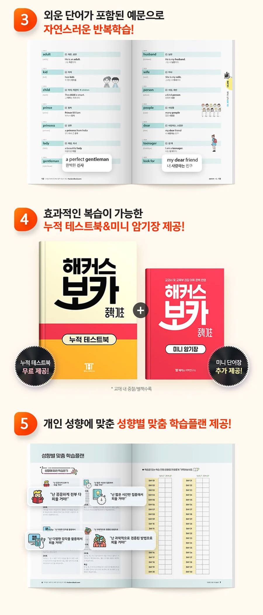 3) Day별 단어를 반복 테스트할 수 있는 ‘누적 테스트북’을 통해
